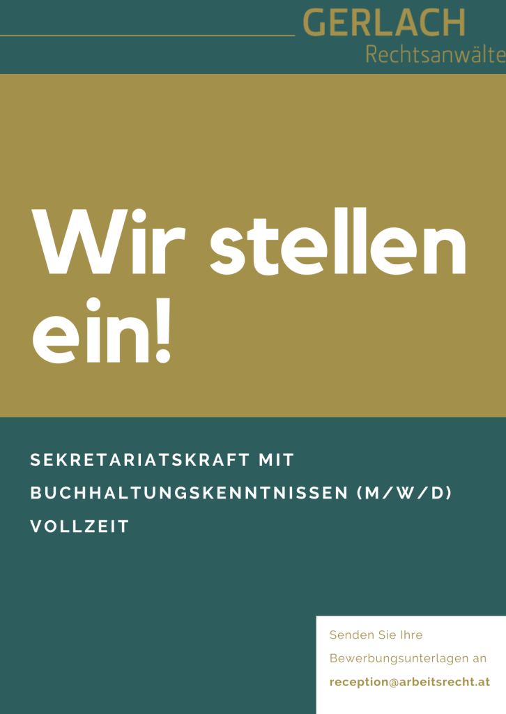 Als eine der führenden Arbeitsrechtskanzleien Österreichs suchen wir ab sofort eine*n Sekretariats-/Assistenzkraft (m/w/d), Vollzeit/TeilzeitAls eine der führenden Arbeitsrechtskanzleien Österreichs suchen wir ab sofort eine weitere Sekretariatskraft bzw. Teamassistenz (m/w/d) zur Verstärkung unseres jungen Teams mit dem Schwerpunkt Abrechnung.